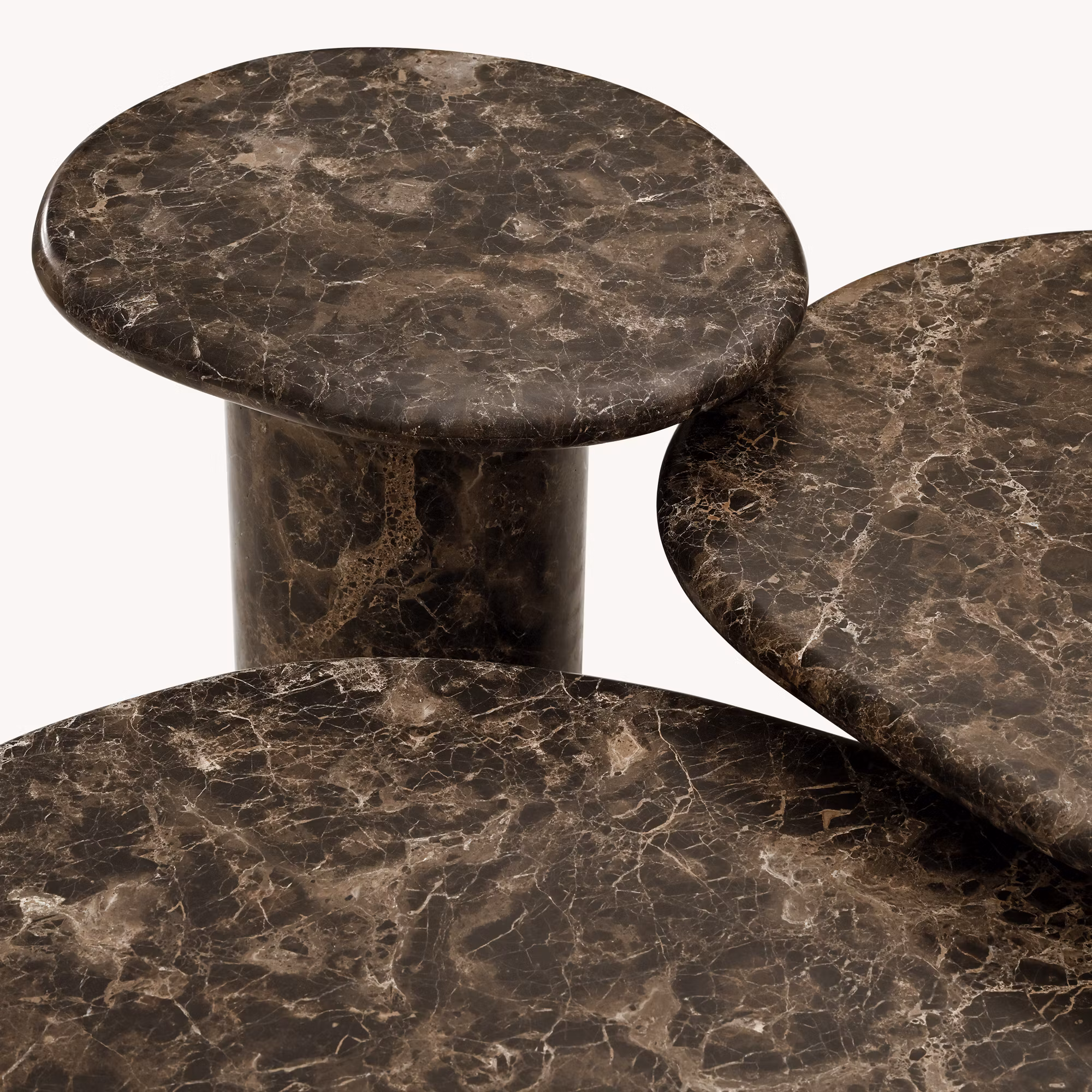 The Agnes Coffee Table set, a symphony of natural beauty and organic shape. Crafted from Dark Emperador marble.
