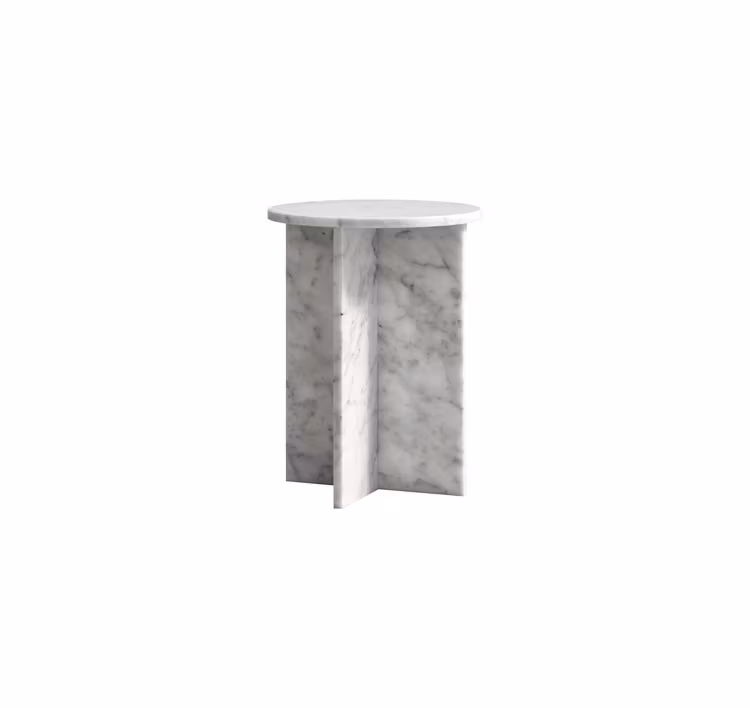 This table is crafted from Italian statuarietto marble with a polished finish. Polishing results in a beautiful shine that enhances the patterns and colours of the marble – for a more striking impression. The surface of each table is sealed and treated with end use in mind, allowing us to provide the optimal compromise between a natural finish and functionality.
