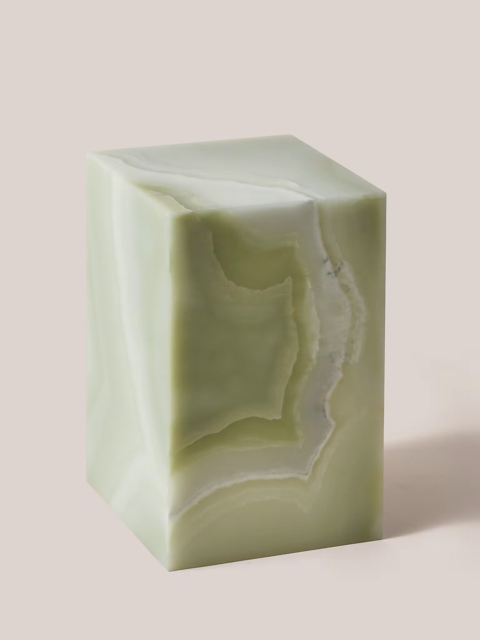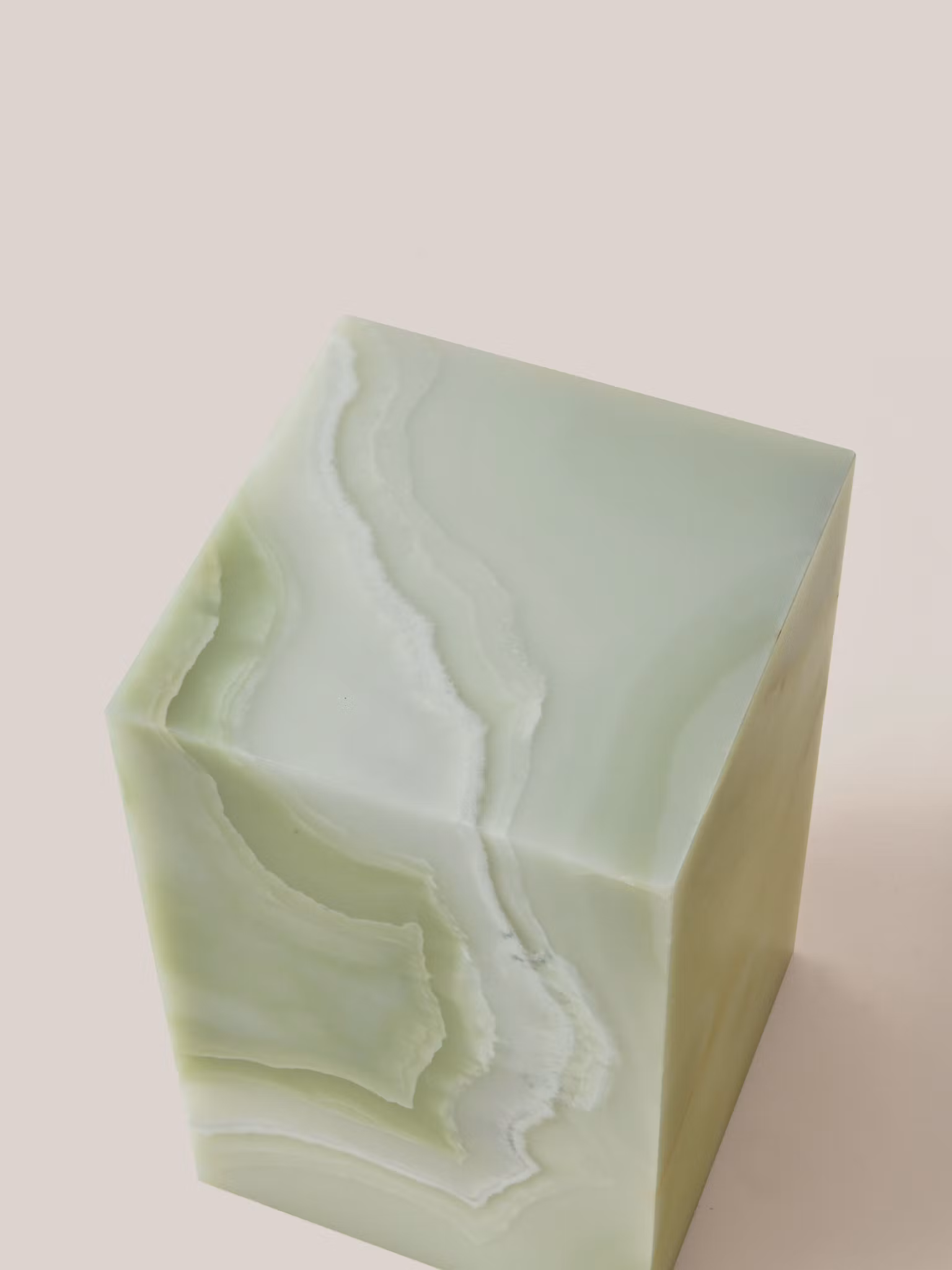 Invite some playfulness into your home and enrich the interior with the beautiful pastels of our Onyx Stone Collection. The collection includes cubes and pedestals in white, pink, light green and jade green – each piece as tasty as a French macaron.